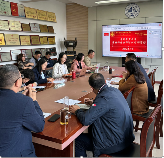 审核评估小组成员一一汇报了教学文档整理情况,分析存在的问题,讨论确定整改办法。
