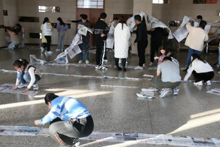第二个项目是“无敌风火轮”,参赛队伍用报纸、剪刀、胶带这些有限资源,完成一个由报纸组成的闭合履带,然后全体人员站在履带的上面,同心协力,让履带滚动起来,冲向终点。这个游戏将培养学员的组织计划与协调能力,培养大家服从指挥、一丝不苟的工作态度以及增强队员间的相互信任和理解。