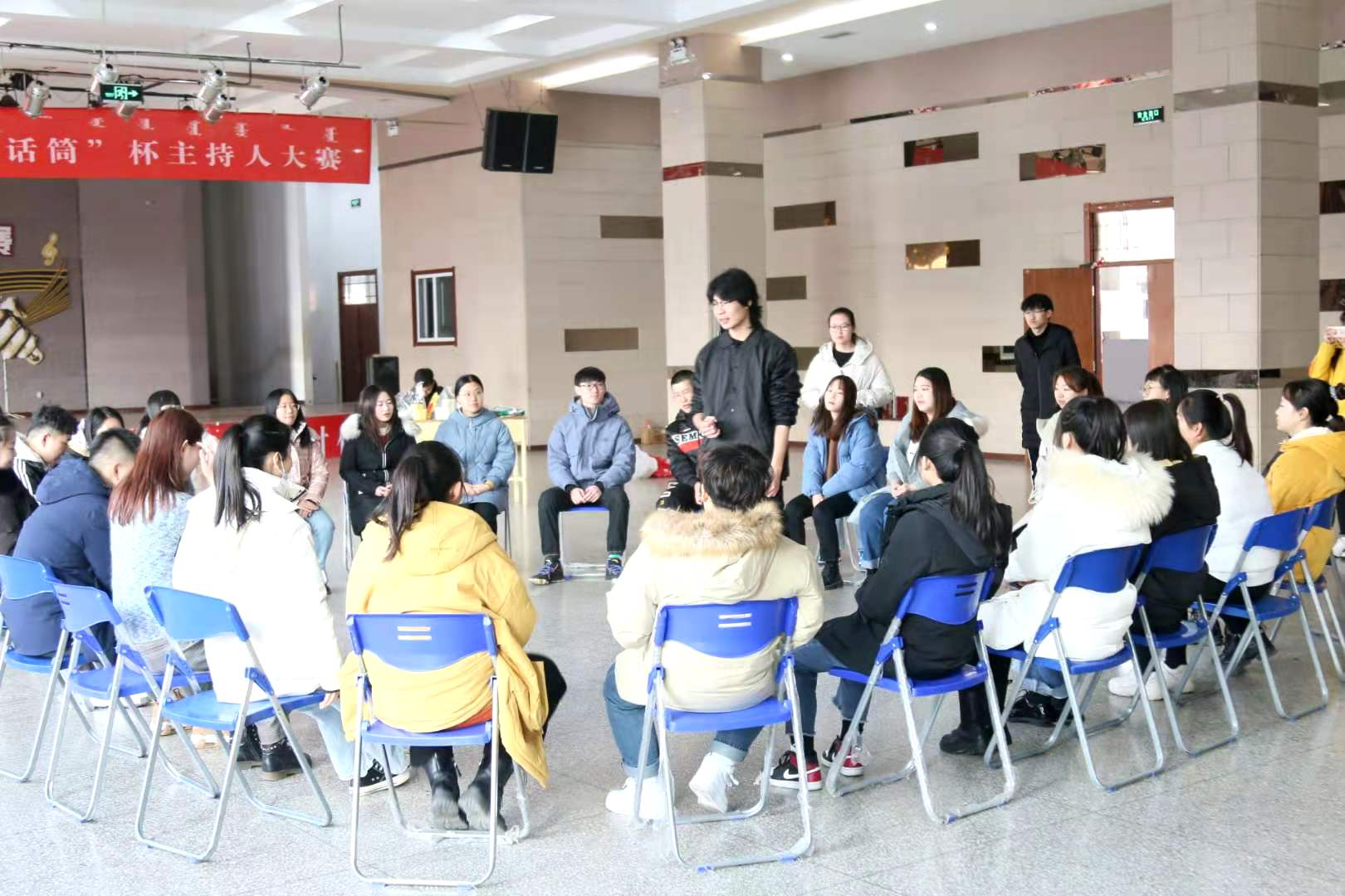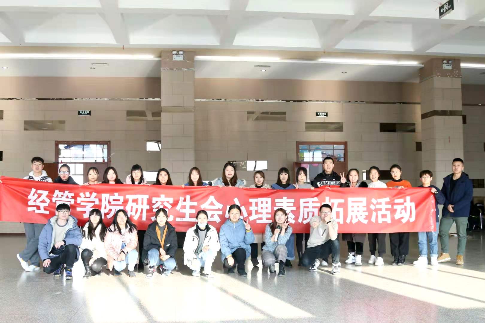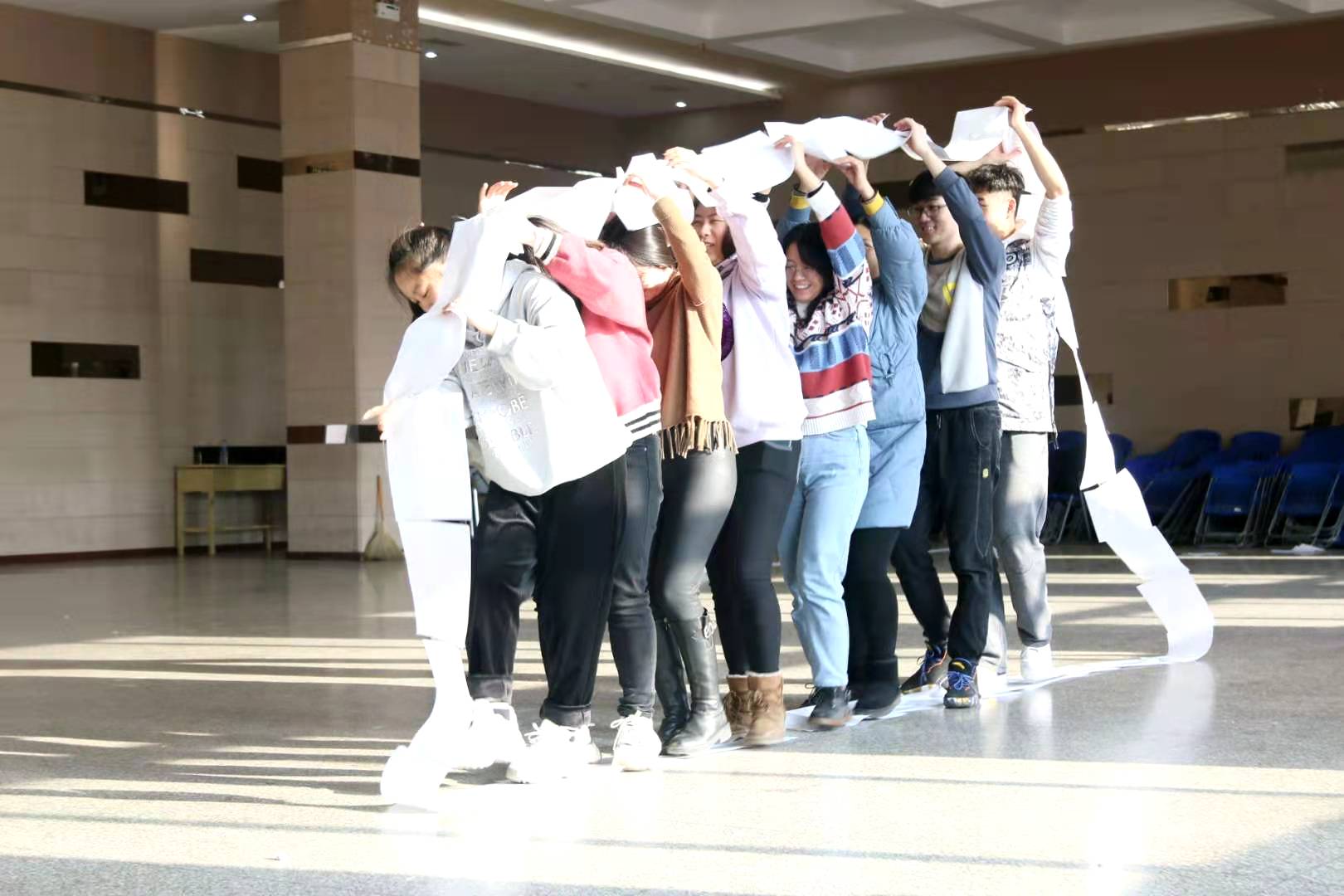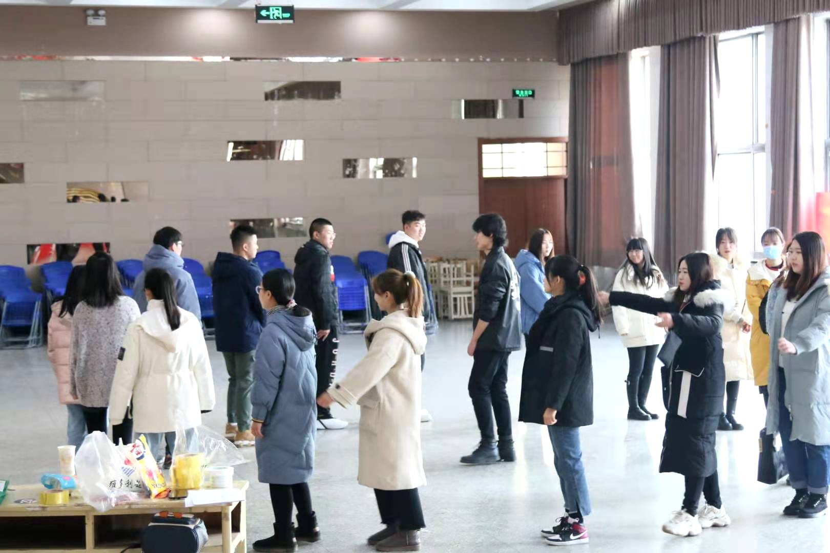 公司研会于12月5日在新城校区旧思源餐厅三楼组织2020级研究生进行心理素质拓展训练活动。通过一些有趣的小游戏,使参与的每位同学打开心扉,树立积极的生活态度,学会以团队的形式与同伴携手解决问题,在相互信赖的团队中体验成长以及成功的喜悦,释放压力,增强自信。