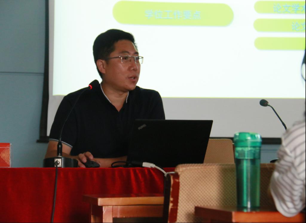 会议伊始,侯剑老师首先表达了对2020级研究生新生的热烈欢迎。随后他就研究生的教学管理作出阐释,对研究生学籍管理与培养工作要点、学位工作要点、学术道德规范、网络安全及人身财产安全等方面作了重点解读。最后,他指出,作为研究生要用更高的标准要求自己,要刻苦钻研,学好专业知识,为今后的研究生生活做好合理规划,更要积极进行学术研究,立志发表高质量论文。