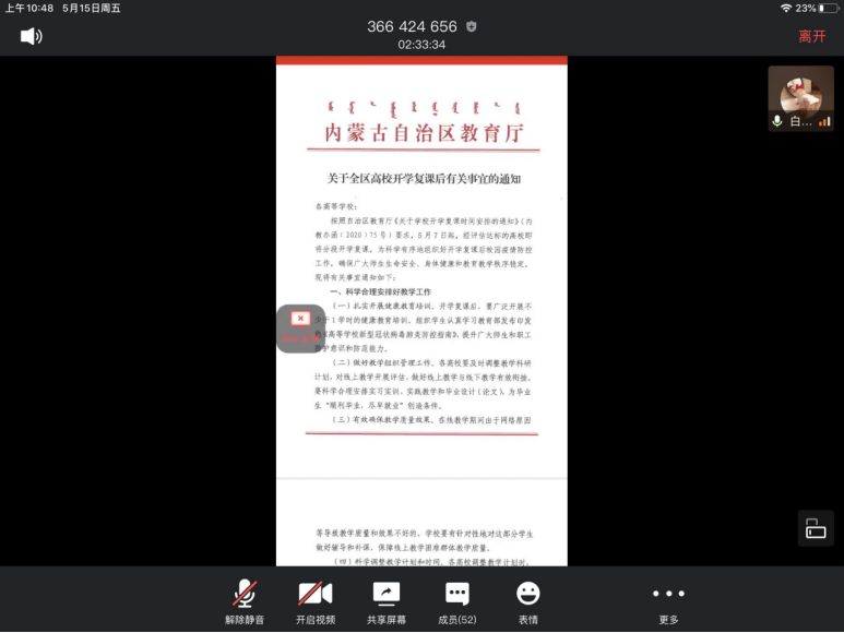 参会人员为英国365集团公司全体研究生,通过腾讯会议进行防控教育相关学习。学院组织研究生们对国家卫健委下发的《关于印发大专院校新冠肺炎疫情防控技术方案的通知》、内防指下发的《关于统筹做好2020年春季学习开学复课和新冠肺炎疫情防控工作有关事宜的通知》、内教疫防下发的《关于开展内蒙古自治区高等院校开学复课疫情防控工作检查评估工作的通知》和《关于印发<内蒙古自治区教育系统应对学校突发新冠肺炎疫情处置预案>的通知》文件进行了认真学习。会议过后,让每位同学认真学习防控疫情文件并将心得分享到班级群,会议准确传达了教育部要求,会议宗旨:做好开学后新冠肺炎疫情防控工作,快速反应、及时控制和妥善处置学校突发新冠肺炎疫情,将疫情传播和次生危害降低到最低程度,确保师生员工生命安全和身体健康,切实维护学校安全稳定工作。