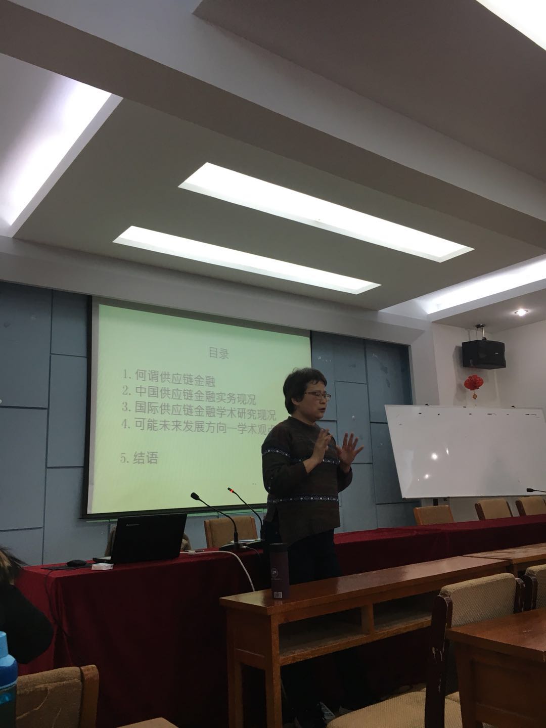 首先,长青老师对林博士的一些基本情况做了介绍,林博士是双博士学位,同时还是四个孩子的母亲,是一个学术水平很高且本身内心特别强大的人。此次讲座对主要针对以下四方面内容进行讲解。一、何谓供应链金融;二、中国供应链金融实务现况;三、国际供应链金融学术研究现况;四、可能未来发展方向——学术观点。林博士结合ppt与板书生动形象地为大家展示了何谓供应链金融。供应链金融主要是对营运资金进行管理,营运资金包括存货、应收账款、应付账款。其中计算税前利润时所用到的成本是由期初存货、直接材料、直接人工、制造费用、期末存货构成。还举了一个实例:若小公司向大公司销售货物,会出现应收账款,若大公司不及时向小公司付款造成小公司坏账,可能会导致小公司资金周转不畅,甚至可能会破产,而现实中的实际情况是小公司相对比大公司来说更难向银行申请贷款,中小企业融资难问题亟待解决。之后向大家展示了供应链金融面临的挑战:信息不对称、信息有限管理、延时对账、手工处理等。现阶段,我国出现了P2P网络借贷平台,这一可供中小企业融资。最后讲述了可能未来的发展方向——绿色供应链方向。