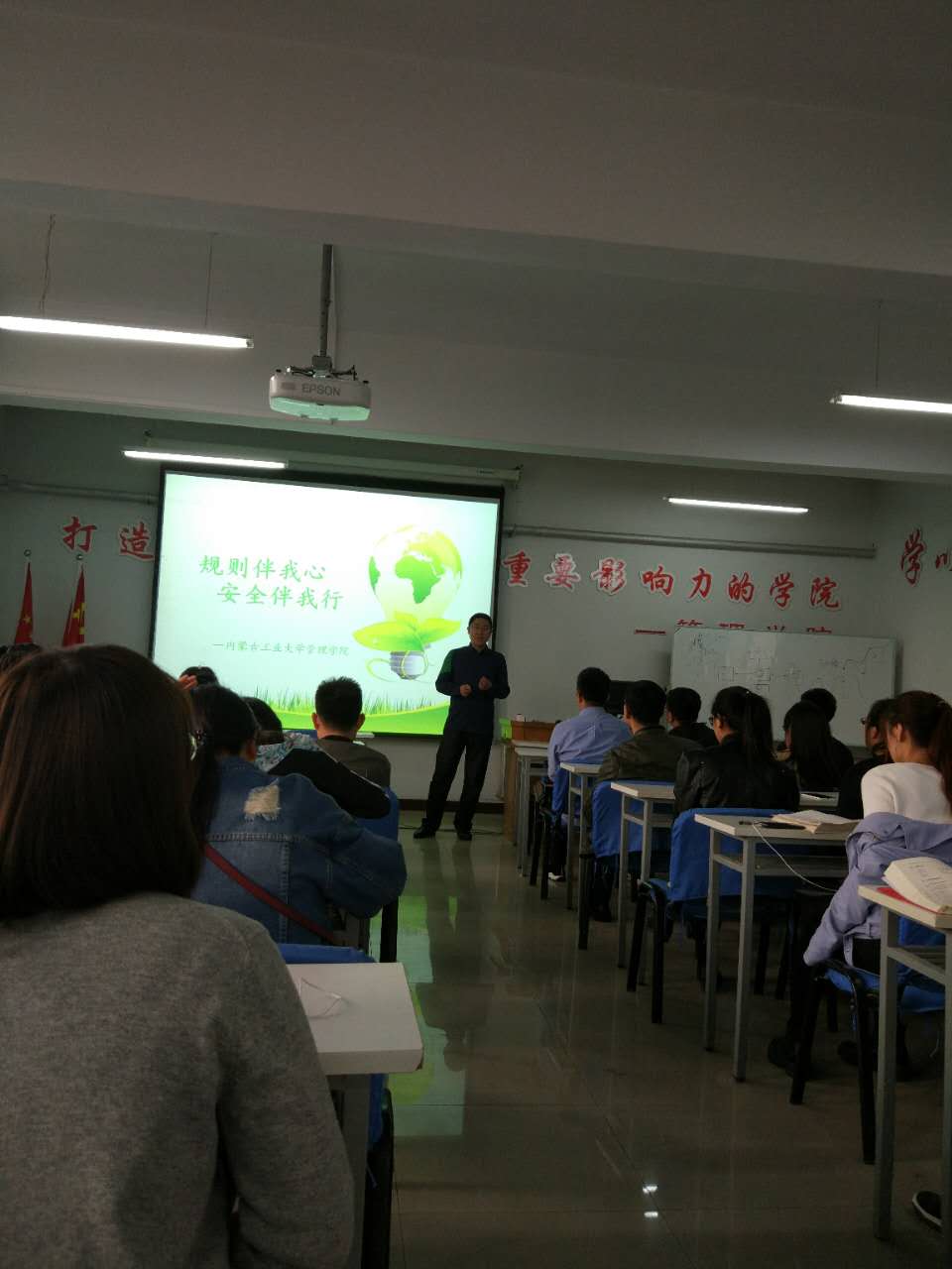 为了增强研究生的校规校纪意识,5月5日下午,管理学院开展主题为"规则伴我心,安全伴我行”的讲座。学院2016级研究生辅导员侯剑老师为主讲,16级研究生参加。