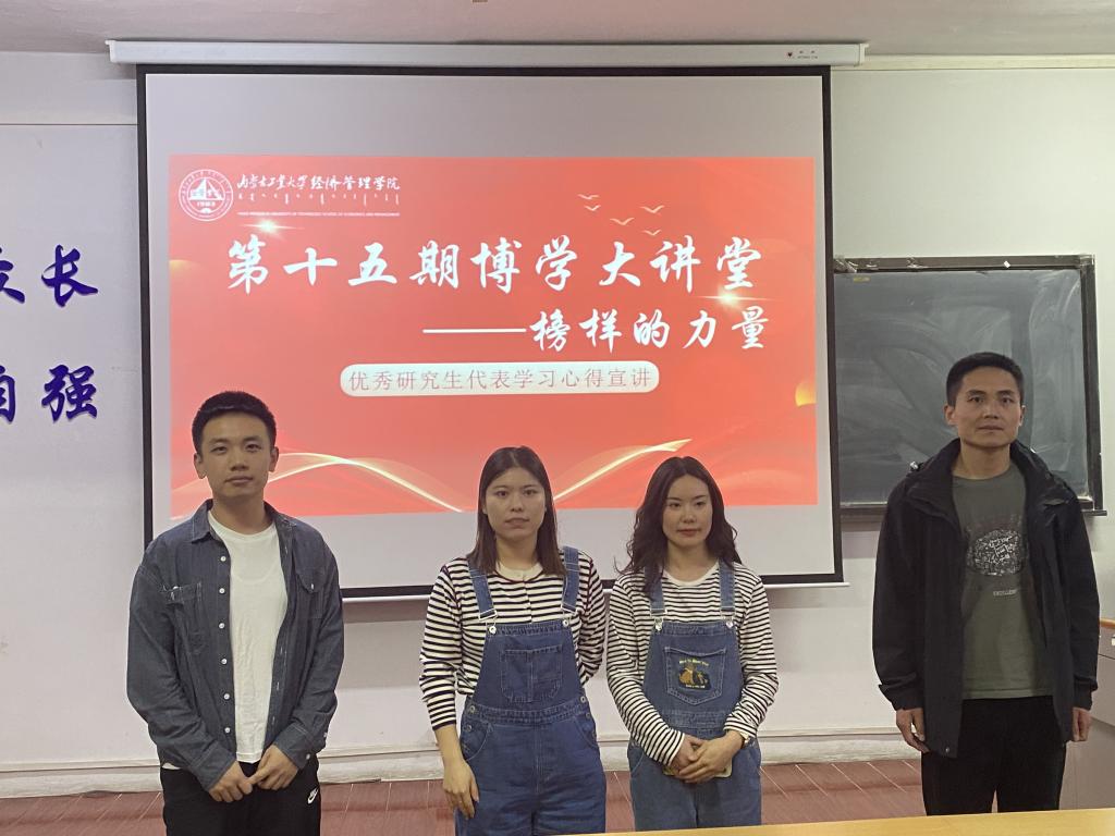 为进一步加强研究生学风教育,展现英国365集团公司青年学子自强不息精神和砥砺前行的文明风尚,4月17日下午18点,学院于主楼210教室举办了第15期博学大讲堂,研究生“榜样的力量”宣讲会。本次邀请到曹恒利、雷冰岩、白裕、于超四位优秀研究生员工代表进行演讲。研究生辅导员侯剑老师出席了此次宣讲会,在校研究生参与并聆听了此次会议。