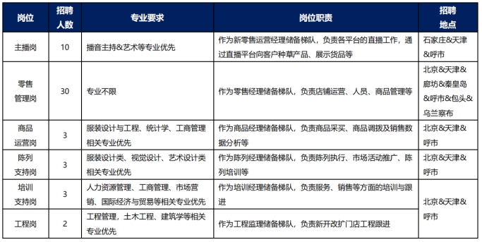 在经历零售终端实践,商品/陈列/培训/营销等岗位轮岗后,积累和掌握管理区域及提高生意的能力,将成长为军区军种(办事处/事业部负责人)及核心职能的高管储备梯队: