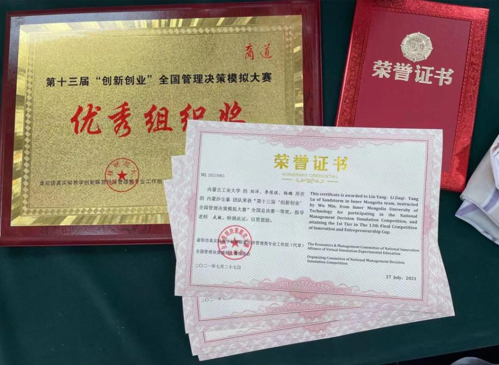比赛中,公司代表队运用从稳中求胜到冒险一搏的战略模式,从开设专卖,增强品控到开设个性化产品的营销策略,运用现代化企业管理知识,虚拟企业经营,直面风险与诱惑,联合团队、迎战对手,以过人的勇气与自信,奋力角逐,最终取得全国一等奖的好成绩。另在学院的高度重视及社团理事会的有序管理下,公司荣获本届大赛优秀组织奖。