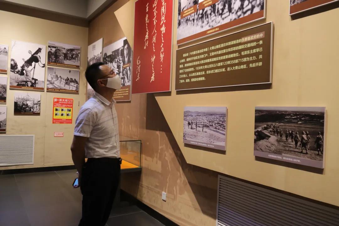 翻开风云激荡的红色篇章,在党史学习中汲取奋斗力量,实践队一行赴乌兰察布市集宁战役红色纪念园开展党史学习教育。在红色纪念园,师生一行重温入党誓词和入团誓词。在参观战役馆中,一幅幅珍贵的历史照片引得师生驻足观看,一位位英勇的革命先烈让师生肃然起敬。特别是讲解员在讲解到乌兰夫、王若飞等老一辈革命同志在乌兰察布开展地下活动,坚持秘密革命斗争,燃起塞外革命的星星之火时,大家无不为之感概动容,热血沸腾。