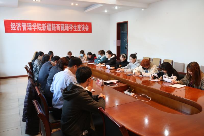 座谈会在轻松愉悦的气氛中进行,座谈会上,同学们逐一进行自我介绍,并就个人在学习、生活上的情况、遇到的困难和问题、今后的打算等方面与老师们交流和探讨。公共20-2班藏族员工旦增卓嘎代表新生发言,她代表全体新疆、西藏籍同学承诺,要团结友爱、互帮互助,尊师恳学、严于律己、争做一名优秀的新时代老员工。工管18-2班新疆籍员工傲云塔娜欢迎学弟学妹们加入经管大家庭,她介绍了自己在大学期间在学习、生活上的收获,她代表少数民族员工感谢学院的亲切关怀和真诚帮助,感谢学院用心用情的为少数民族员工服务。公共管理19级研究生古丽胡玛尔•麦合木提,针对考研的方法和经验与同学们进行分享交流,她重点分析了在考研过程中的要点把控、心态调整等问题,同时她希望准备考研的学弟学妹能如愿考上心仪的学校,在奋斗的路上走向成功。