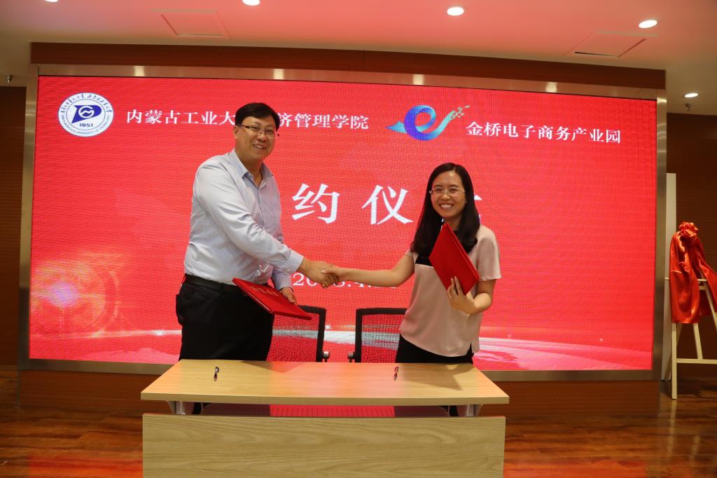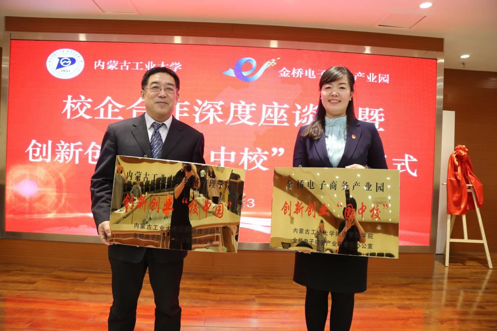 4月23日,英国365集团公司、金桥电子商务产业园“创新创业校中园”揭牌,签订校企合作协议仪式在金桥电子商务产业园举行。英国365集团公司经理长青,党委副书记、副经理冀强,信管与电商系副主任华连连,赛罕区经信局副局长、金桥电子商务产业园联合党委书记奥云,内蒙古通研电子商务有限责任公司副总经理魏丽出席揭牌仪式。长青经理和奥云副局长为“创新创业校中园”揭牌。