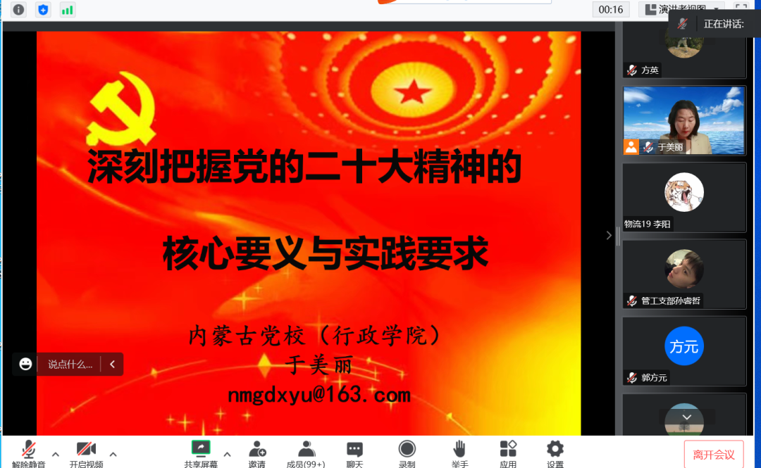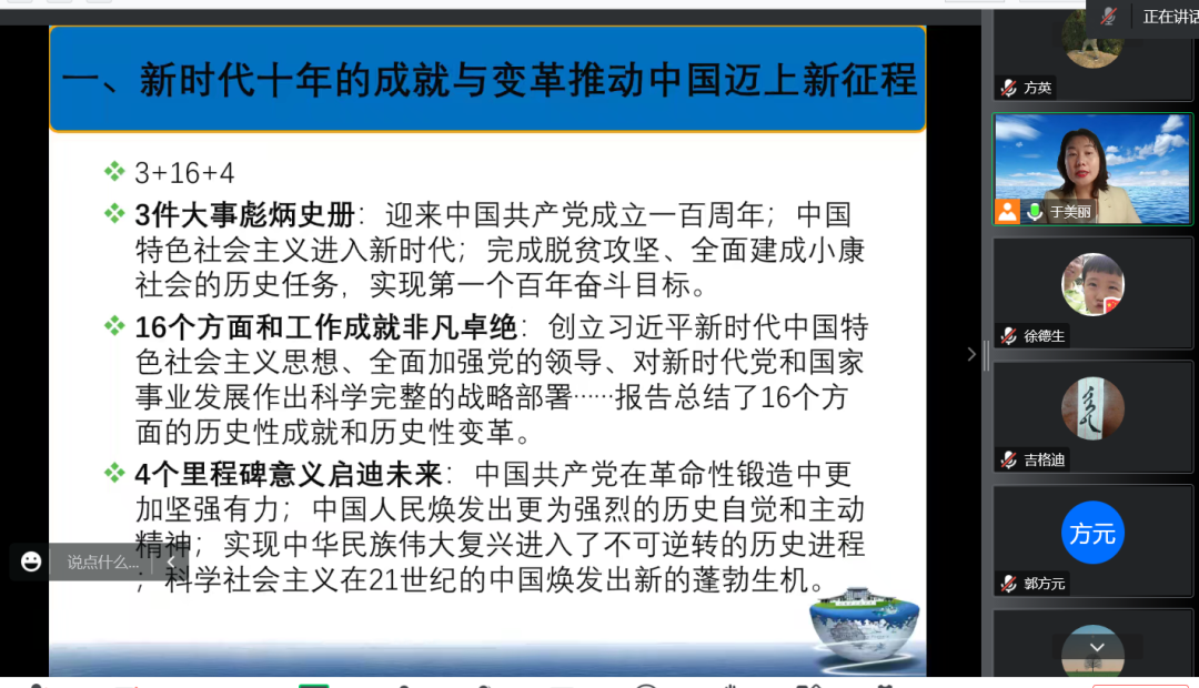 为深入学习贯彻党的二十大精神实质和深刻内涵,掀起学习宣传贯彻党的二十大精神热潮,教育引导全院师生把思想和行动统一到党的二十大精神上来。12月9日下午,公司党委召开了学习贯彻党的二十大精神宣讲会,邀请内蒙古自治区党公司党史党建教研部于美丽副教授作宣讲报告。学院全体教师、员工党员及发展对象以线上形式收听收看了此次报告,公司党委副书记、副经理徐德生主持。