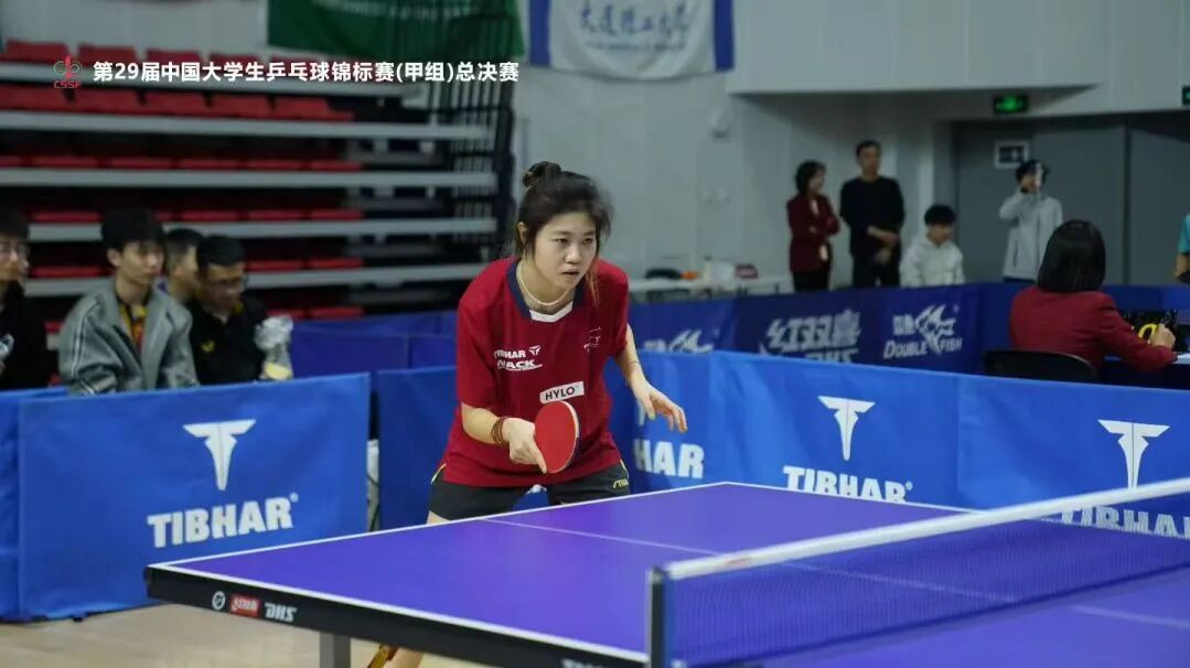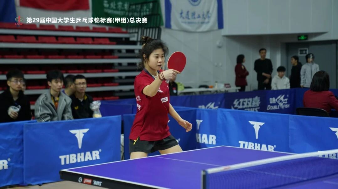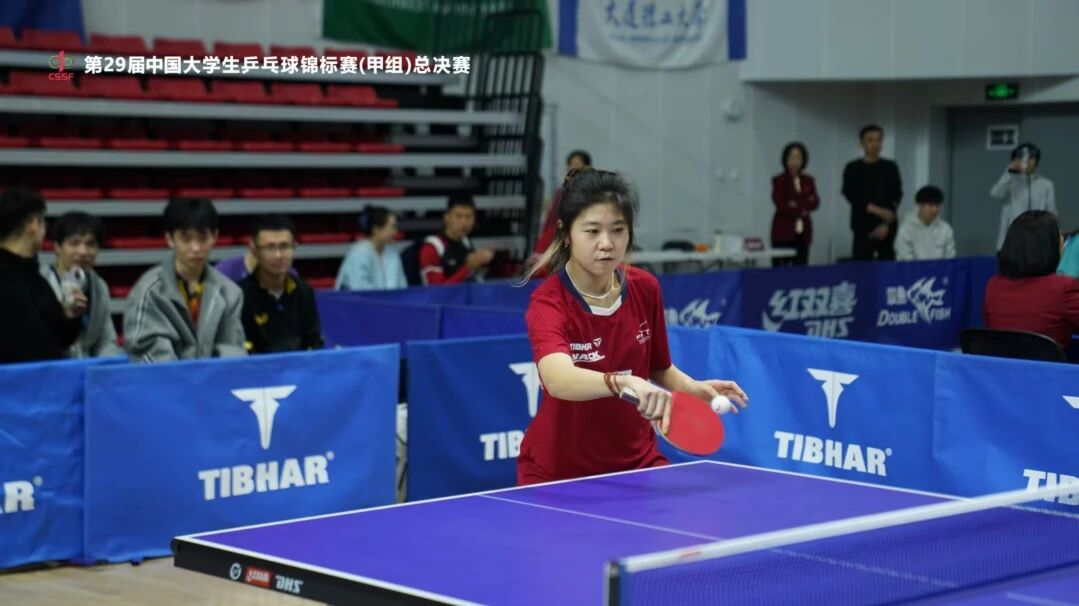 本次总决赛汇聚全国高校乒乓精英,竞争尤为激烈。混合团体赛中,陈奕含同学作为队伍核心沉着应战:发球细腻精准,相持阶段攻防转换流畅,多次在胶着战局中为团队拿下关键分数;双打轮次里,她与队友默契配合、线路衔接巧妙,单打对决中每分必争、心态沉稳,既展现了扎实的基本功,更彰显了出色的抗压能力与团队意识,成为团队晋级的关键支撑。
