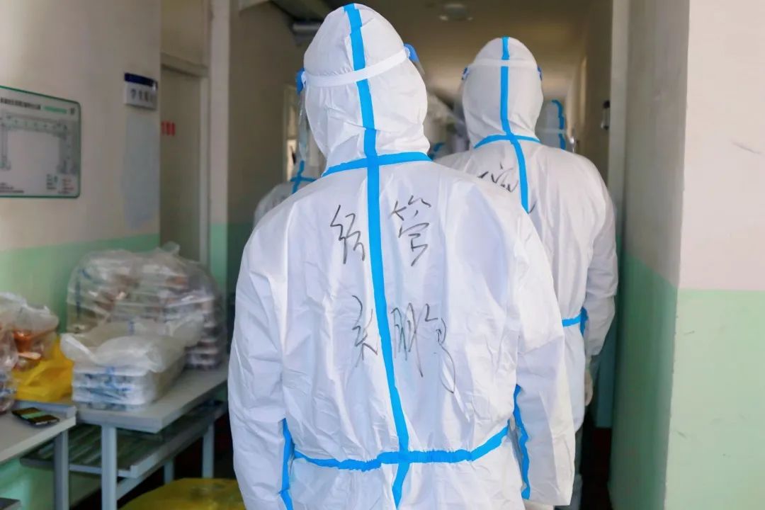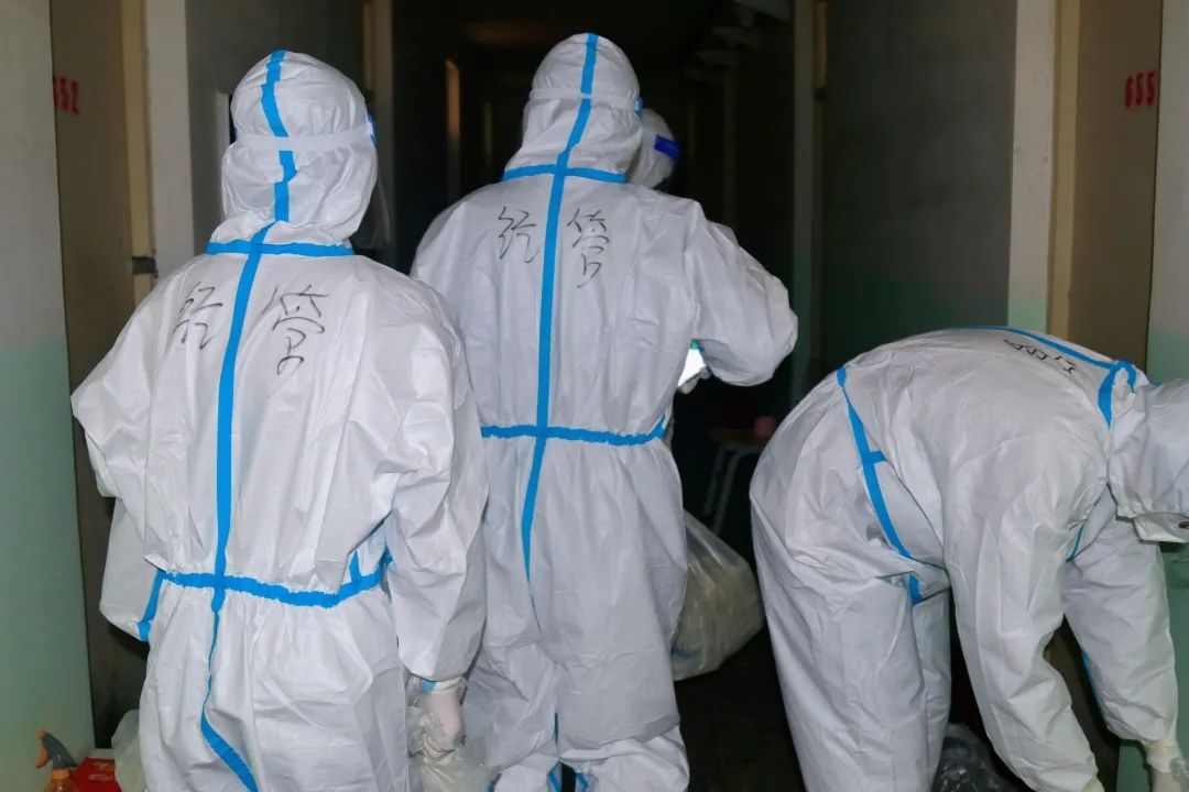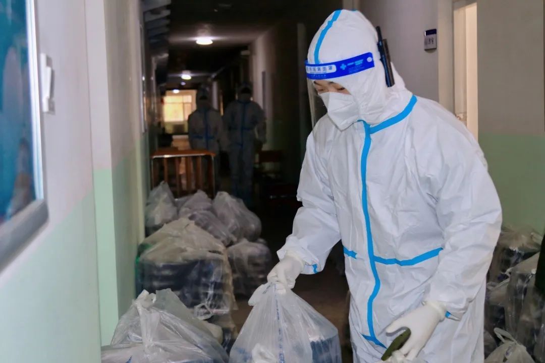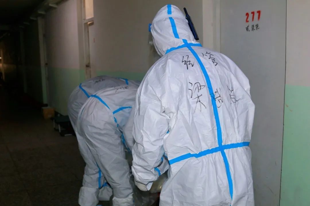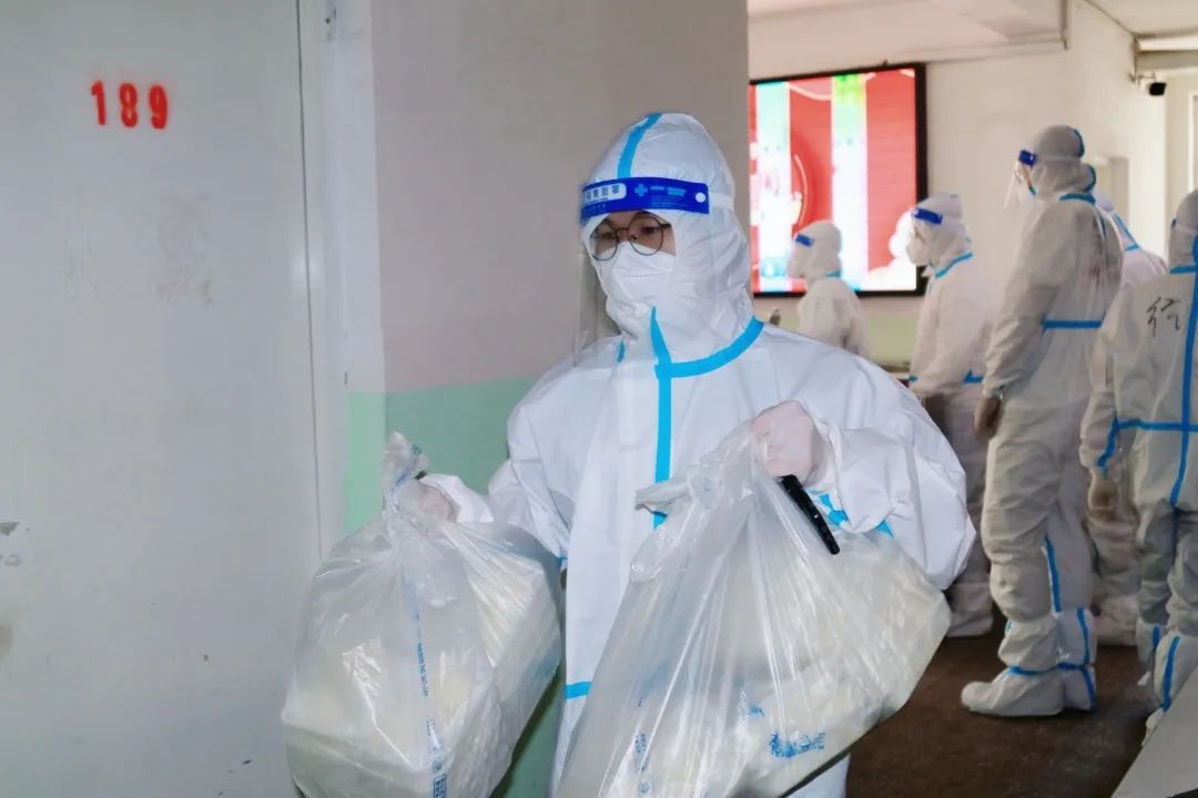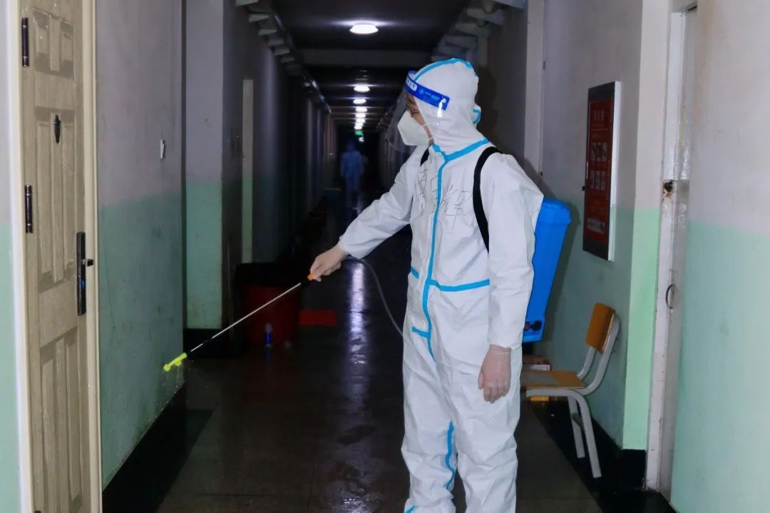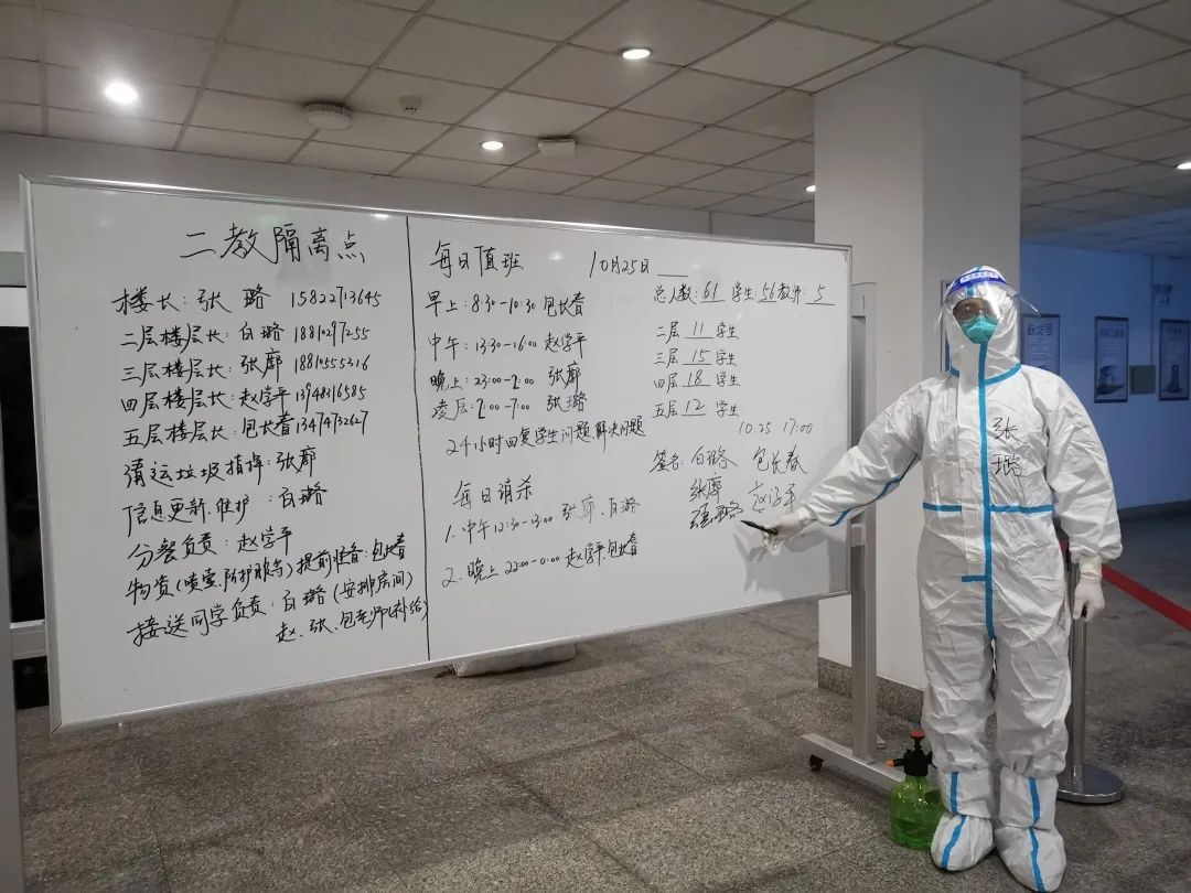 他们每日早早到岗,穿好防护服,准备好物品,便投入于一天的工作之中。物资和三餐发放、核酸和抗原检测、环境消杀和消毒工作等,都充盈着他们“简单平凡”的一天,日日如此。在结束了白天的工作后,大白们晚上为大家进行“云歌会”“云朗颂”,缓解大家压力。亦或学习相关防疫知识,准备好明日所需物资,部署好明日相关工作。