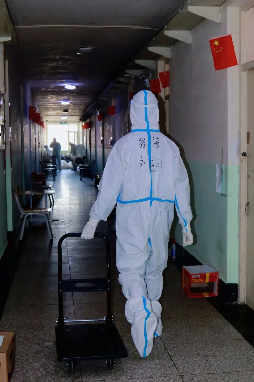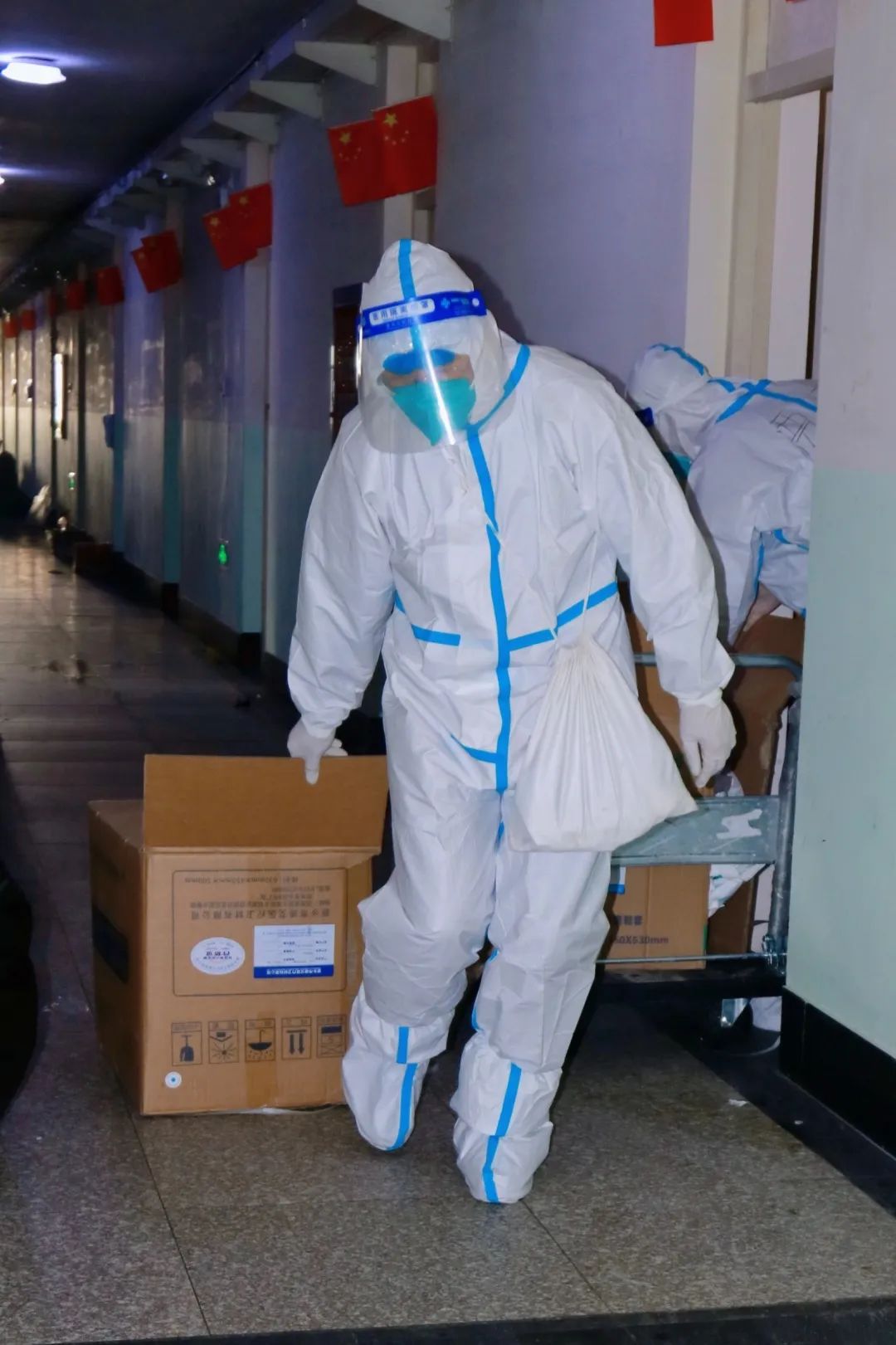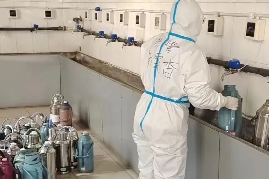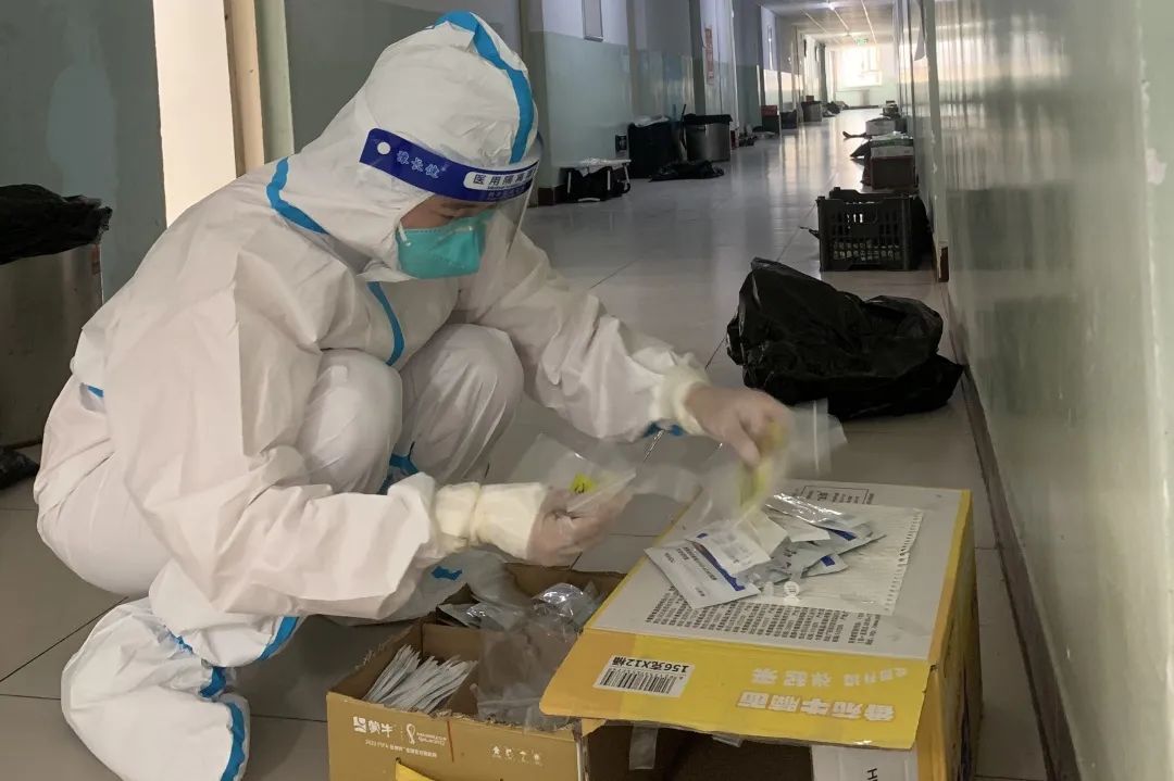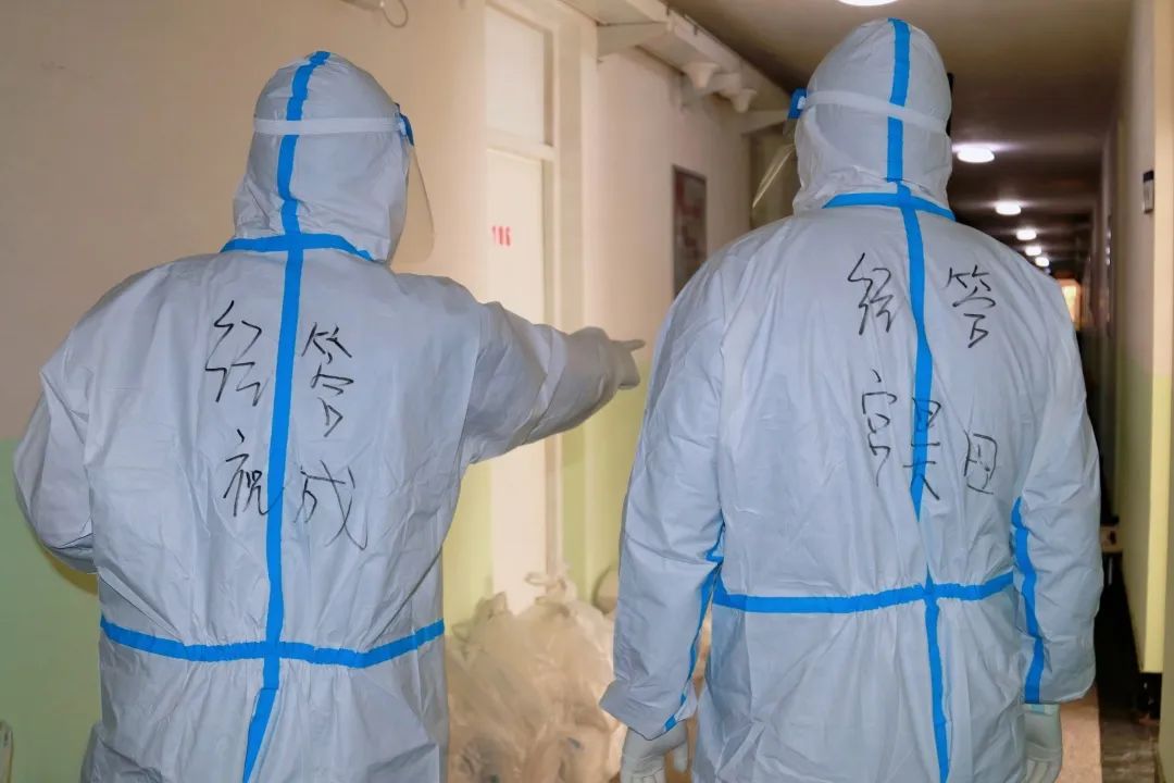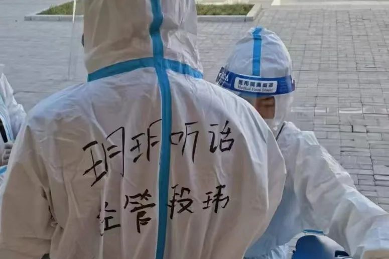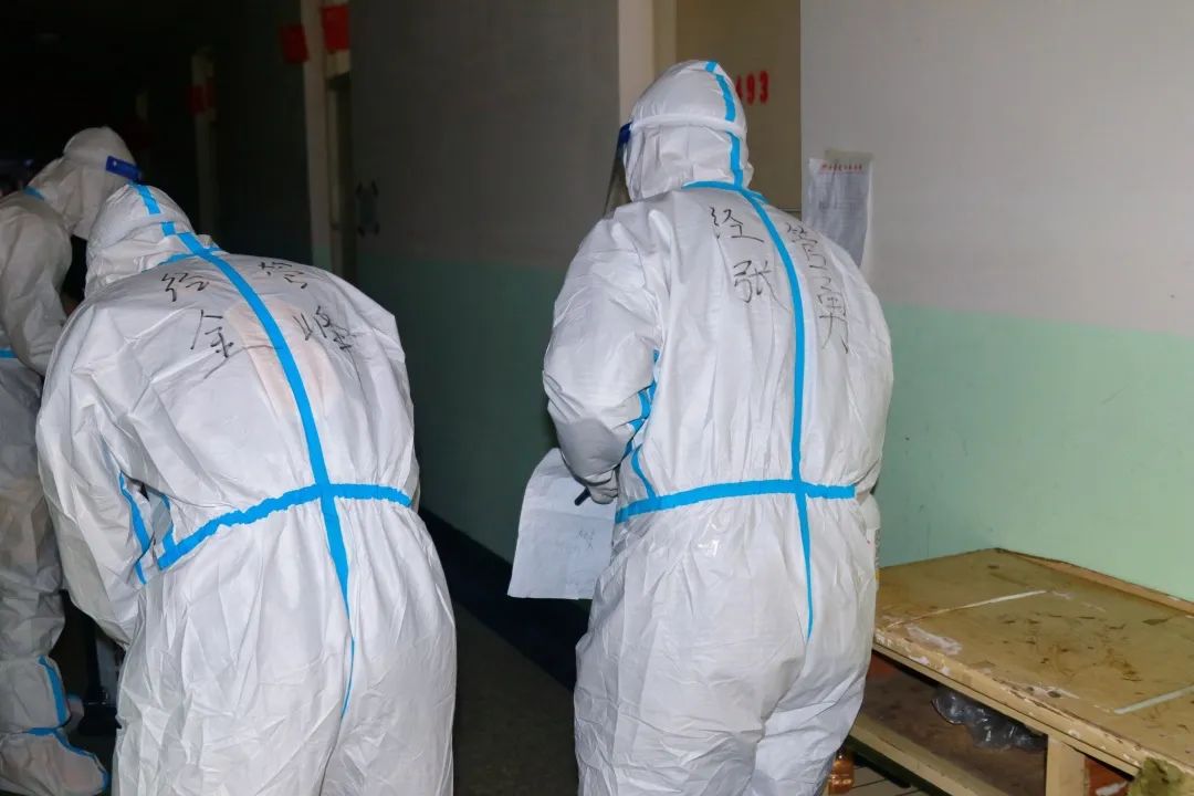 他们每日早早到岗,穿好防护服,准备好物品,便投入于一天的工作之中。物资和三餐发放、核酸和抗原检测、环境消杀和消毒工作等,都充盈着他们“简单平凡”的一天,日日如此。在结束了白天的工作后,大白们晚上为大家进行“云歌会”“云朗颂”,缓解大家压力。亦或学习相关防疫知识,准备好明日所需物资,部署好明日相关工作。
